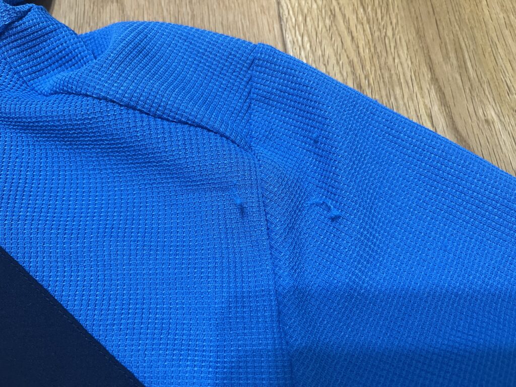 買い物をしている時間(30分くらい)子供を抱っこしていた際に、肩の部分がほつれてしまうという出来事がありました。